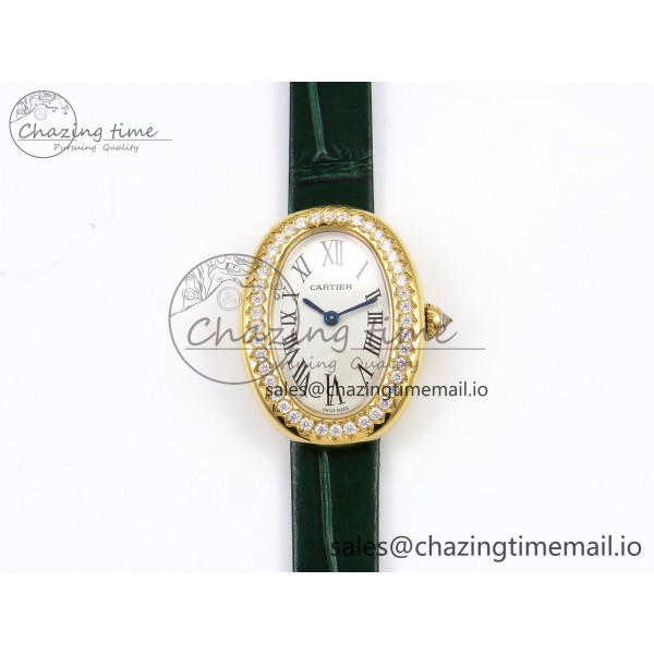 [AF공장]까르띠에 베누아 YG Diamonds Bezel on Green Leather Strap Ronda Quartz